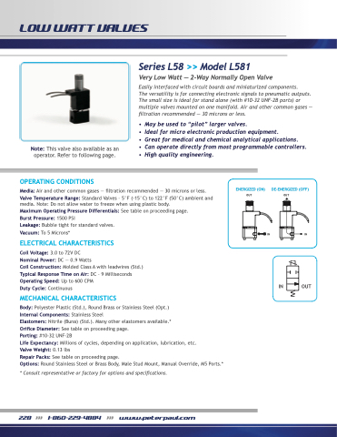 The versatility is for connecting electronic signals to pneumatic outputs. The small size is ideal for stand alone (with #10-32 UNF-2B ports) or multiple valves mounted on one manifold. Air and other common gases — filtration recommended — 30 microns or less.