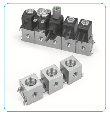 标准的、常规的 , 单件加工的不锈钢 , 铝合金或可选黄铜的电磁阀组使得经济、低剖面高度阀组的紧凑排列. 这些阀组非常适合固定及持续操作应用。这些阀组可由 50, 30, 20,70 系列操作头构建。